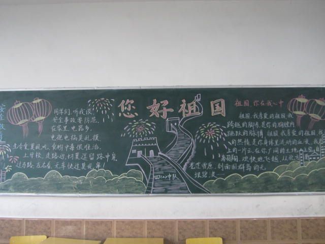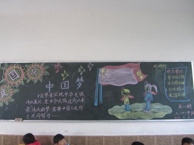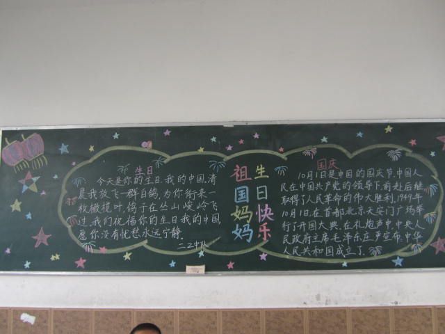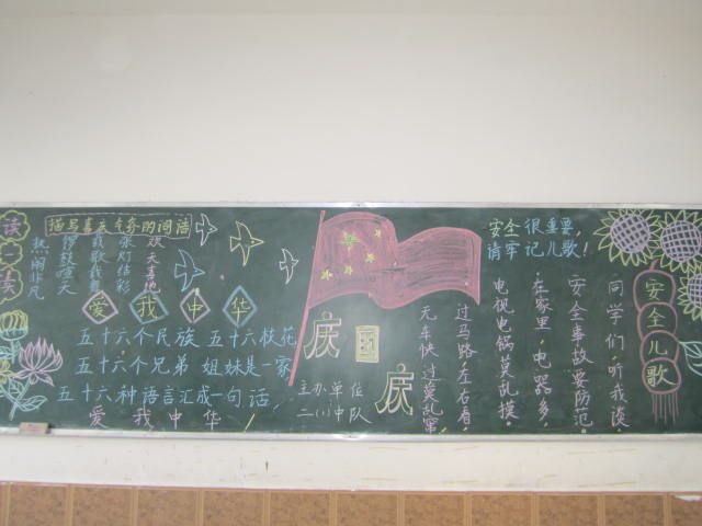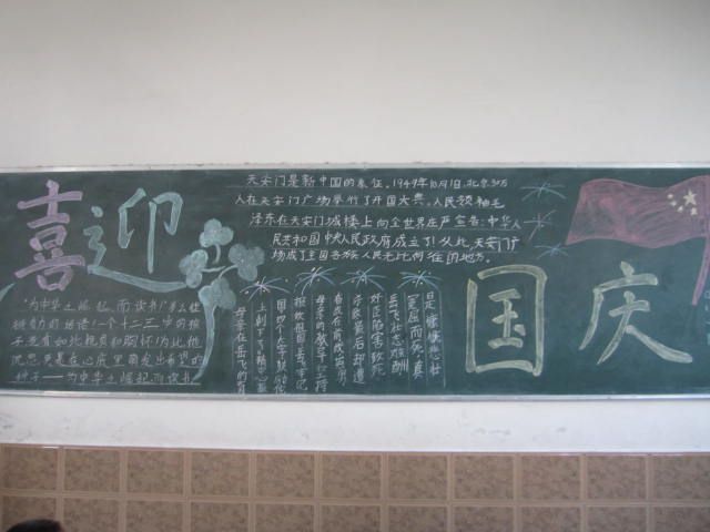 为了庆祝国庆节,培养学生的爱国热情,我校举行了庆国庆黑板报评比。经过各班级的精心准备,学校认真评选,下列班级被评为一二等奖。同时发现存在一些问题:如有些班级主题和内容都不相符;也有些班级,只改了主题,里面的内容无体现;有些班级只改了一小块的内容,主题不明显;还有个别班级板面设计比较粗糙和简单。希望以后的比赛大家都能向优秀班级学习。另特别提示;黑板报上一定要写明主办班级。
