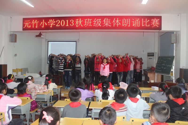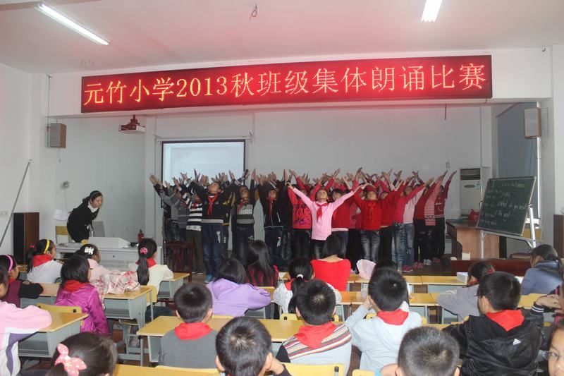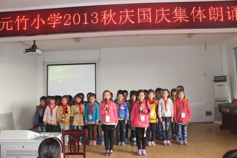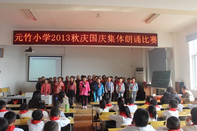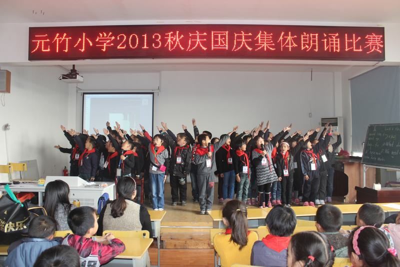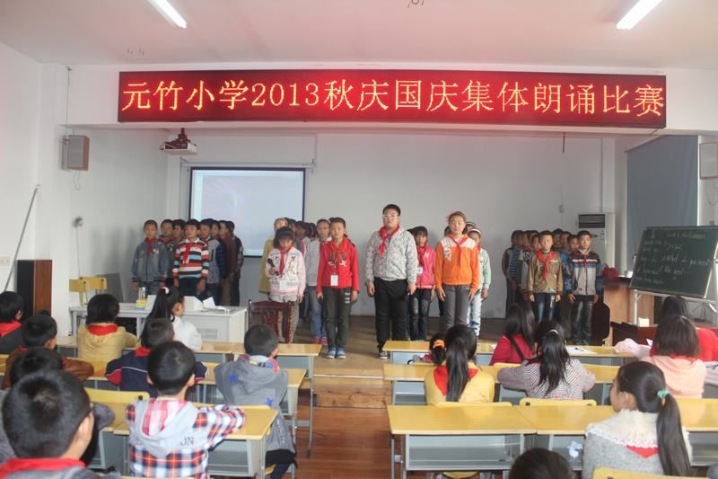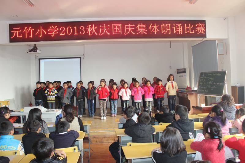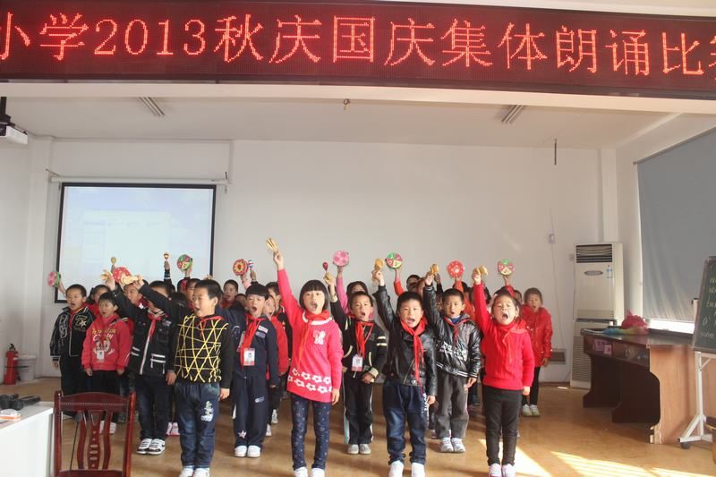 为了弘扬祖国的传统文化,激发学生的爱国主义情感,进一步丰富学生的课余生活,我校于10月底举行了2013年“庆国庆”班集体诗朗诵比赛。