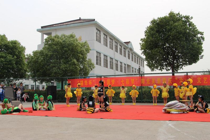 洁净的校园、鲜红的地毯、美丽的服装、无不显示出浓浓的节日氛围。同学们自编的节目相继登场,舞蹈《偶像万万岁》展示了学生们朝气蓬勃的精神面貌,课本剧《九色鹿》让同学们在笑声中明白了做人要讲诚信的道理……孩子们活泼的身影、精彩的表演,把师生带进了欢乐的海洋,现场不断爆发出阵阵热烈的掌声。家长们看着自己孩子出色的表演,情不自禁地拿出手机、照相机争相拍摄,把欢乐的场面永远地定格下来。