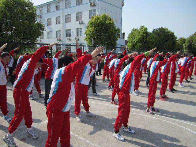 经过一个多月的刻苦训练,学生们做操时动作协调、整齐划一。与以往不同的是此次比赛班主任都必须站在队列前领操,让教师和学生都在此次比赛中都