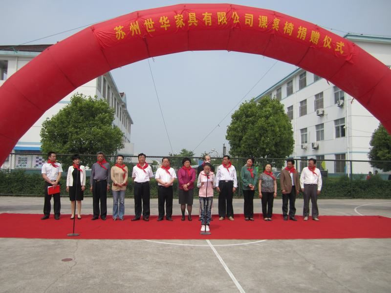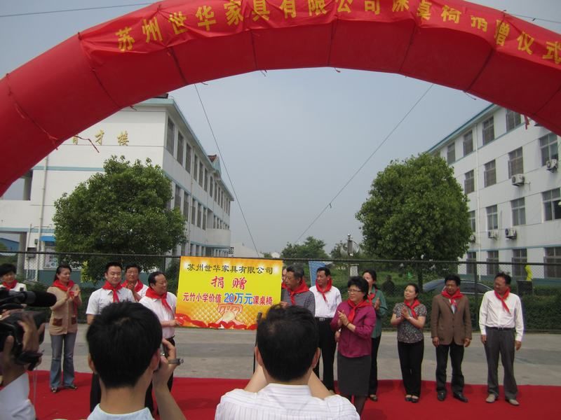 5月12日上午,苏州世华家具有限公司课桌椅捐赠仪式在元竹小学举行,省政府侨务办公室副主任季俊秋、助理巡视员陈苏一行及苏州世华家具有限公司董事长秦林元出席仪式,我市副市长张健羽、政协副主席高寿林及侨办、教育局、元竹镇有关负责同志陪同。副市长张健羽同志主持仪式。
