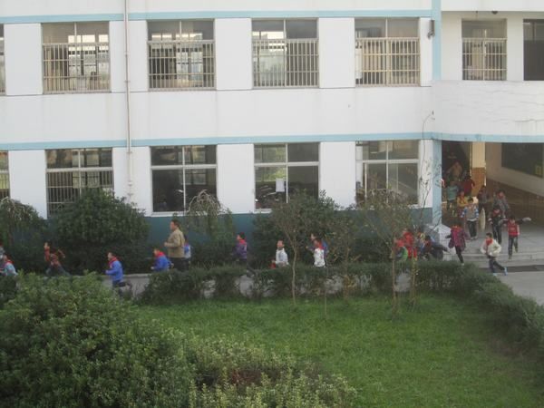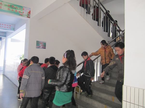 2012年11月12日下午,刺耳的警报声划破学校的宁静,防火、防踩踏疏散演练活动正式开始。在学校领导和班主任老师的统一指挥下,全校学生开始了紧张而有秩序的疏散和撤离。各楼层的学生按照事先安排的路线,在教师的带领下快速有序地向操场跑去。在每一个楼梯口转弯处都有教师负责把守指挥。整个演练过程井然有序、动作迅速,无意外伤害事件的发生。