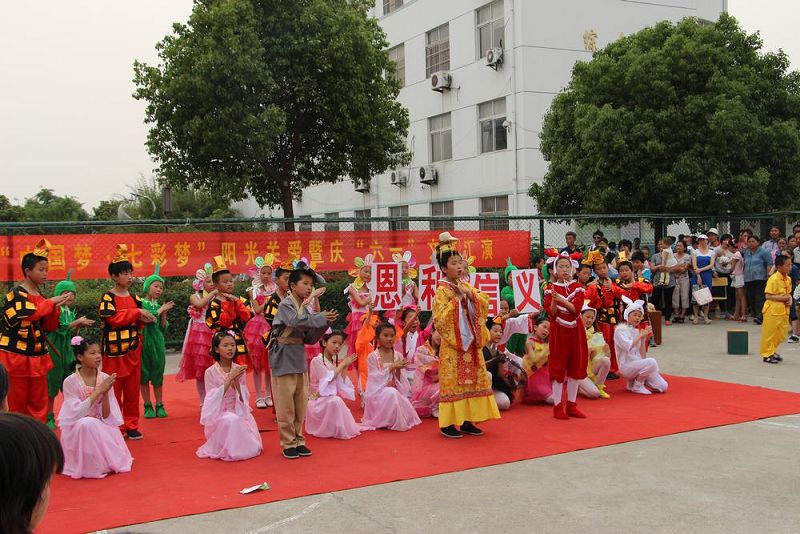 洁净的校园、鲜红的地毯、美丽的服装、无不显示出浓浓的节日氛围。同学们自编的节目相继登场,舞蹈《偶像万万岁》展示了学生们朝气蓬勃的精神面貌,课本剧《九色鹿》让同学们在笑声中明白了做人要讲诚信的道理……孩子们活泼的身影、精彩的表演,把师生带进了欢乐的海洋,现场不断爆发出阵阵热烈的掌声。家长们看着自己孩子出色的表演,情不自禁地拿出手机、照相机争相拍摄,把欢乐的场面永远地定格下来。