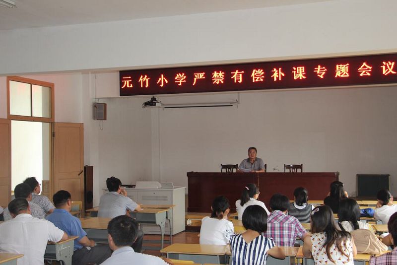 7月20日早上,我校召开了严禁有偿补课专题会议。学校王晓东副校长首先传达了泰州市、泰兴市教育局关于治理有偿补课专题会议的精神,详细地解读了教育部颁布的《严禁中小学校和在职中小学教师有偿补课的规定》。接着,他从危害社会秩序、危害学生身心健康、损害教育形象、破坏教师队伍建设、降低教育质量五方面陈述了有偿补课的危害性。王校长表示,为使本次治理有偿补课工作落到实处,学校将建立多个巡查小组,不定期到教师家走访。最后,老师在《拒绝有偿补课承诺书》上签字。