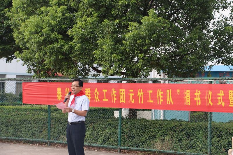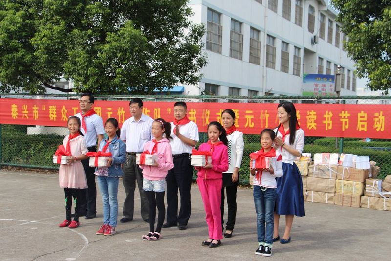 9月14日上午,泰兴市群众工作团元竹工作队的同志在元竹镇党委副书记王进军的带领下,来到元竹小学,给孩子们送来了丰厚的大礼包——价值近4万元的课外必读书籍。