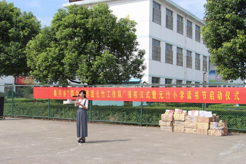 9月14日上午,泰兴市群众工作团元竹工作队的同志在元竹镇党委副书记王进军的带领下,来到元竹小学,给孩子们送来了丰厚的大礼包——价值近4万元的课外必读书籍。